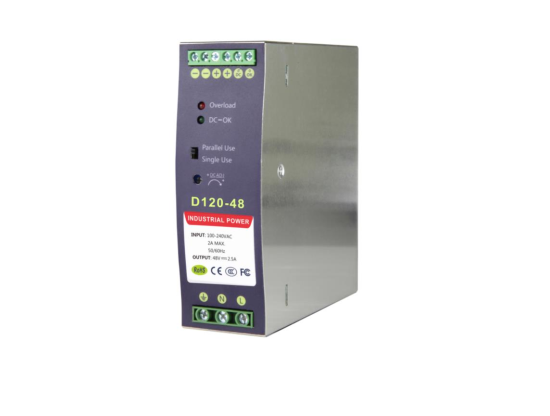 D120-48 là một bộ nguồn DIN rail 120W 48V mỏng tiết kiệm, thích ứng để lắp đặt trên TS-35/7.5hoặc TS-35/15 lắp ray. Thân máy được thiết kế chiều rộng 40mm, giúp tiết kiệm không gian bên trong. Toàn bộ sê-ri sử dụng đầu vào AC toàn dải từ 90VAC đến 264VAC và phù hợp với EN61000-3-2, tiêu chuẩn mà Liên minh Châu Âu quy định cho dòng điện. NDR-120 được thiết kế với vỏ kim loại giúp tăng cường khả năng tản điện cho thiết bị. Với hiệu quả làm việcn lên đến 89%, toàn bộ sê-ri có thể hoạt động ở nhiệt độ môi trường từ -40℃ đến 70℃ trong sự đối lưu không khí. Nó được trang bị chế độ dòng điện không đổi để bảo vệ quá tải, phù hợp với nhiều cảm ứng khác nhauhoặc các ứng dụng điện dung. Các chức năng bảo vệ hoàn chỉnh và các chứng chỉ liên quan để kiểm soát công nghiệpthiết bị (UL508, TUV EN62368-1, v.v.) làm cho D120-48 trở thành giải pháp cung cấp điện rất cạnh tranh choứng dụng công nghiệp.