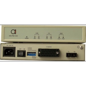 The AN-FM-V35 is a fiber media transport for 1 x V.35 transmission. All modems are available with either multi-mode or single-mode optical tranceivers and with connectors for SC, ST, or FC. In single mode they are available in up to 120 km versions reach, which will provide the ability to transmit and receive data using only a single optical fiber pair.