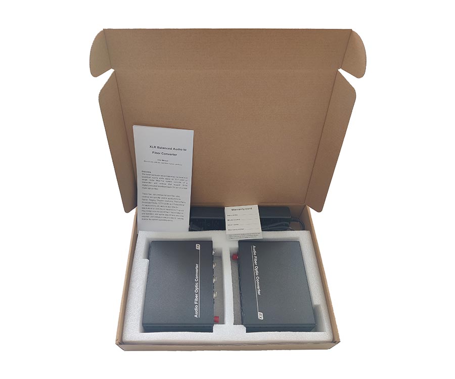 2 channel forward XLR balanced audio converter, DC12V, FC, Single Fiber, 20km |