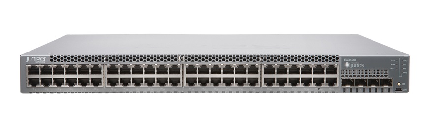 Switch Jupiner EX3400-48T-AFI hỗ trợ 48 cổng 1G Ethernet, 4 cổng 10G SFP+, 2 cổng 40G QSFP+.