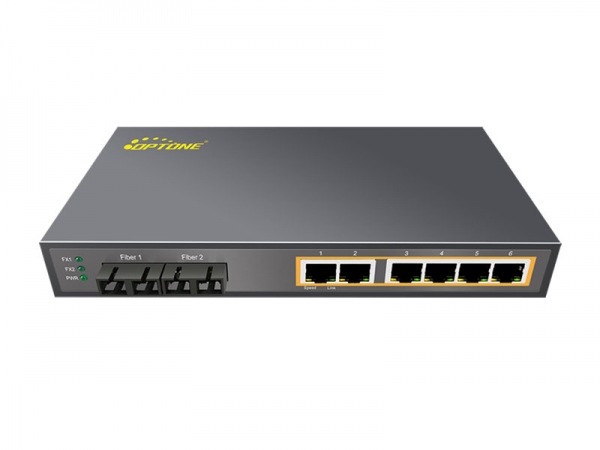 - Cung cấp 6 cổng 10/100M RJ45 và 2 cổng cáp quang